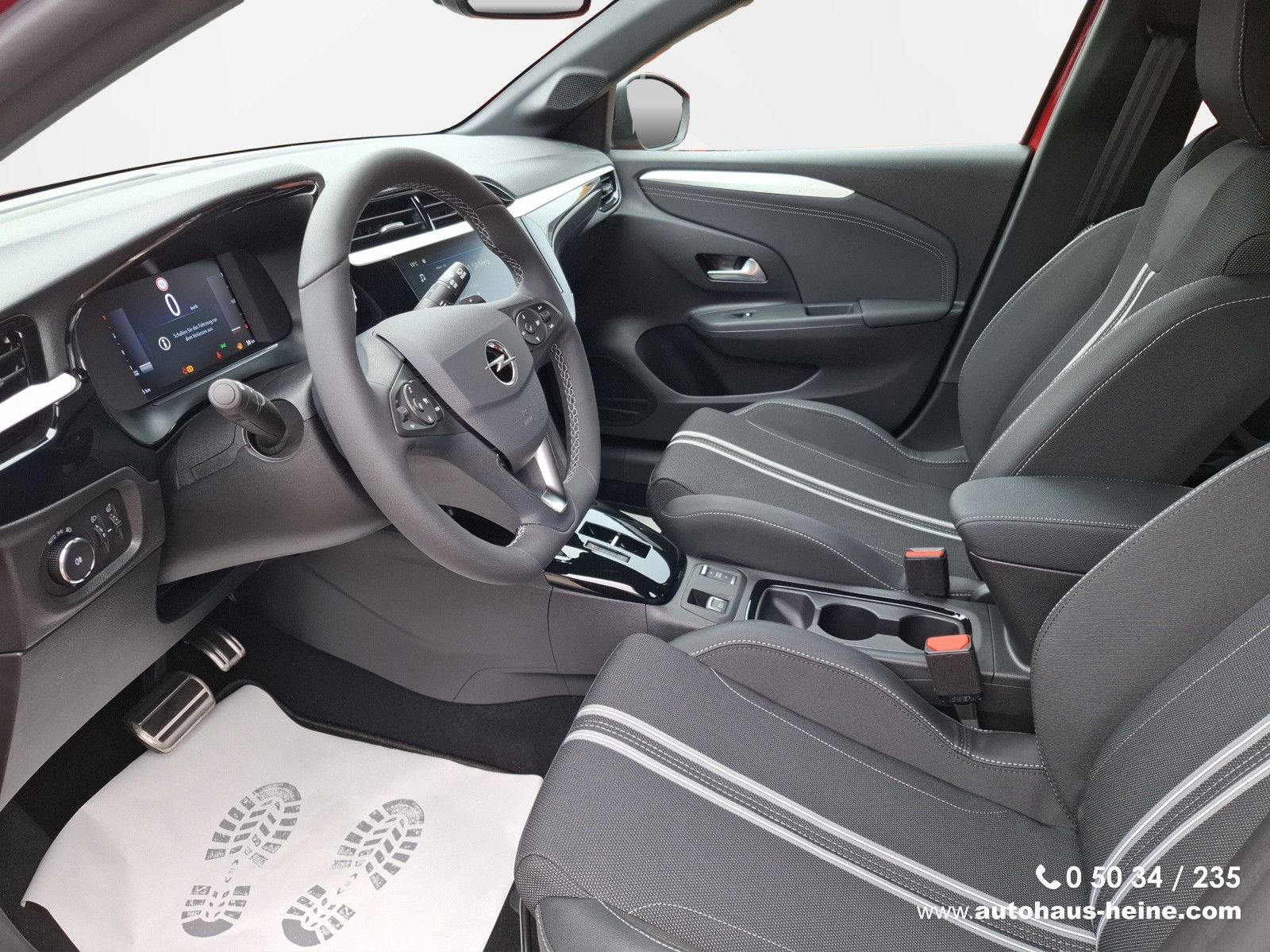 6 Lautsprecher, Airbag Fahrer-/Beifahrerseite, Außenspiegel elektr. verstell- und heizbar, elektr. anklappbar, B-Säulen schwarz Hochglanz (außen), Bordcomputer, Bremsassistent, Dach Kontrast-Lackierung, Dachhimmel schwarz, Elektron. Stabilitäts-Programm Plus (ESP), Fahrassistenz-System: Berganfahr-Assistent (HSA, Hill Start Assist), Fahrassistenz-System: Müdigkeitserkennungs-Sensor, Fahrassistenz-System: Spurhalteassistent, Fahrassistenz-System: Totwinkel-Assistent, Fahrassistenz-System: Verkehrszeichenerkennung, Farbdisplay (7 Zoll), Fensterheber elektrisch vorn + hinten, Fensterheber vorn elektr. mit Einklemmschutz, Feststellbremse elektrisch, Gepäckraumbeleuchtung (LED), Geschwindigkeits-Regelanlage (Tempomat) inkl. Geschwindigkeits-Begrenzeranlage, Getriebe Automatik - mit Start-/Stop (8-Stufen), Heckleuchten LED, Heckscheibenwischer, Innenausstattung: Dekorleisten Rot, Isofix-Aufnahmen für Kindersitz an Beifahrersitz, Isofix-Aufnahmen für Kindersitz an Rücksitz, Karosserie: 5-türig, Kopf-Airbag-System, Kraftstofftank 44 Ltr., Lenkrad (Leder, vegan) mit Multifunktion, Lenksäule (Lenkrad) verstellbar, Leseleuchten vorn (2), LM-Felgen, Mittelarmlehne vorn mit Ablagefach, Modellpflege, Motor 1,2 Ltr. - 96 kW, Nebelschlussleuchte, Opel Connect, Otto-Partikelfilter (OPF), Parkpilotsystem vorn und hinten, Pedale Aluminium, Reifen-Reparaturkit, Rückfahrkamera mit 130° Umgebungsansicht, Rücksitzbank geteilt/klappbar (60:40), Schadstoffarm nach Abgasnorm Euro 6e, Seitenairbag vorn, Sicht-Paket, Sitzbezug / Polsterung: Stoff, Sportsitze vorn, Stoßfänger Sport-Design, Stoßfänger Wagenfarbe, Türgriffe außen Wagenfarbe, Türgriffe innen verchromt, Warnanlage für Sicherheitsgurt, Beifahrerseite, Warnanlage für Sicherheitsgurt, Fahrerseite, Warnanlage für Sicherheitsgurte hinten